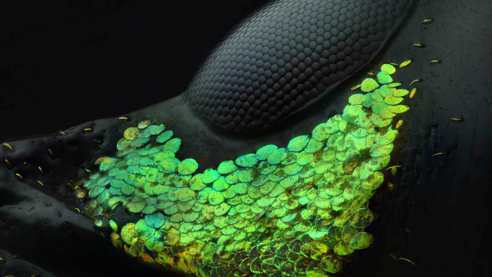 Eye of a green black weevil beetle, 1st Place, 2018 Photomicrography Competition