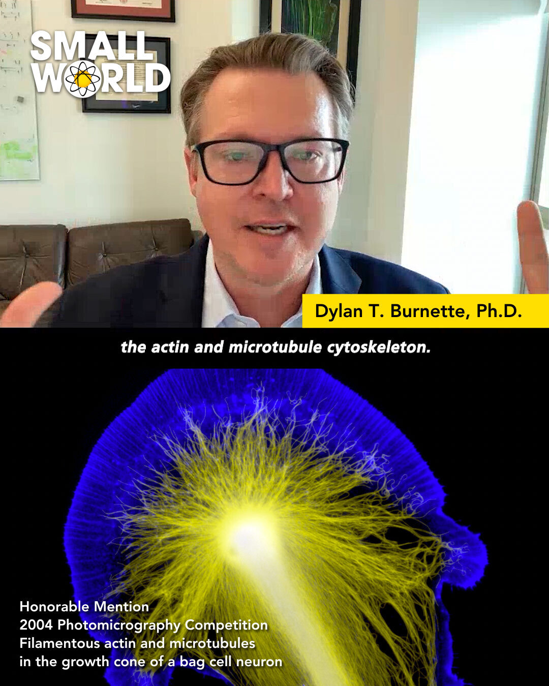 In this Small World Speaks episode, Dylan T. Burnette, Ph.D., Associate Professor of Cell and Developmental Biology at Vanderbilt University School of Medicine and a repeat Nikon Small World and Nikon Small World In Motion winner, shares the story behind his 2004 honorable mention-winning image of a neuronal growth cone.