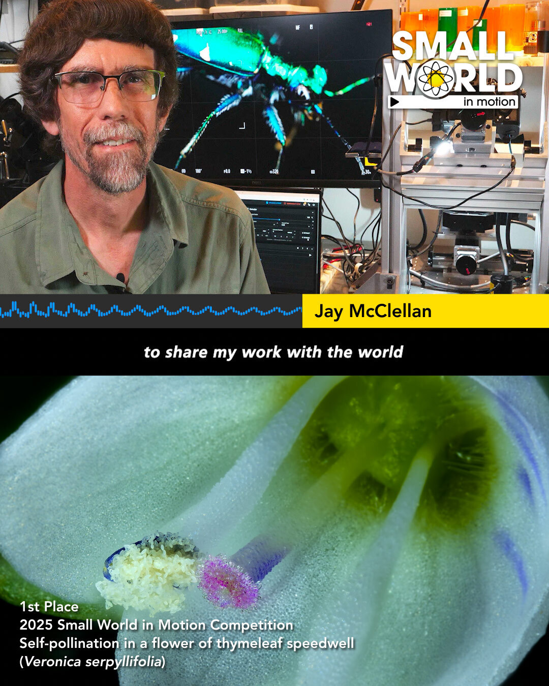 In this Small World Speaks episode, first-place 2025 Small World in Motion winner Jay McClellan shares insights behind his winning video of self-pollination in the flower of thyme leaf speedwell (Veronica serpyllifolia).